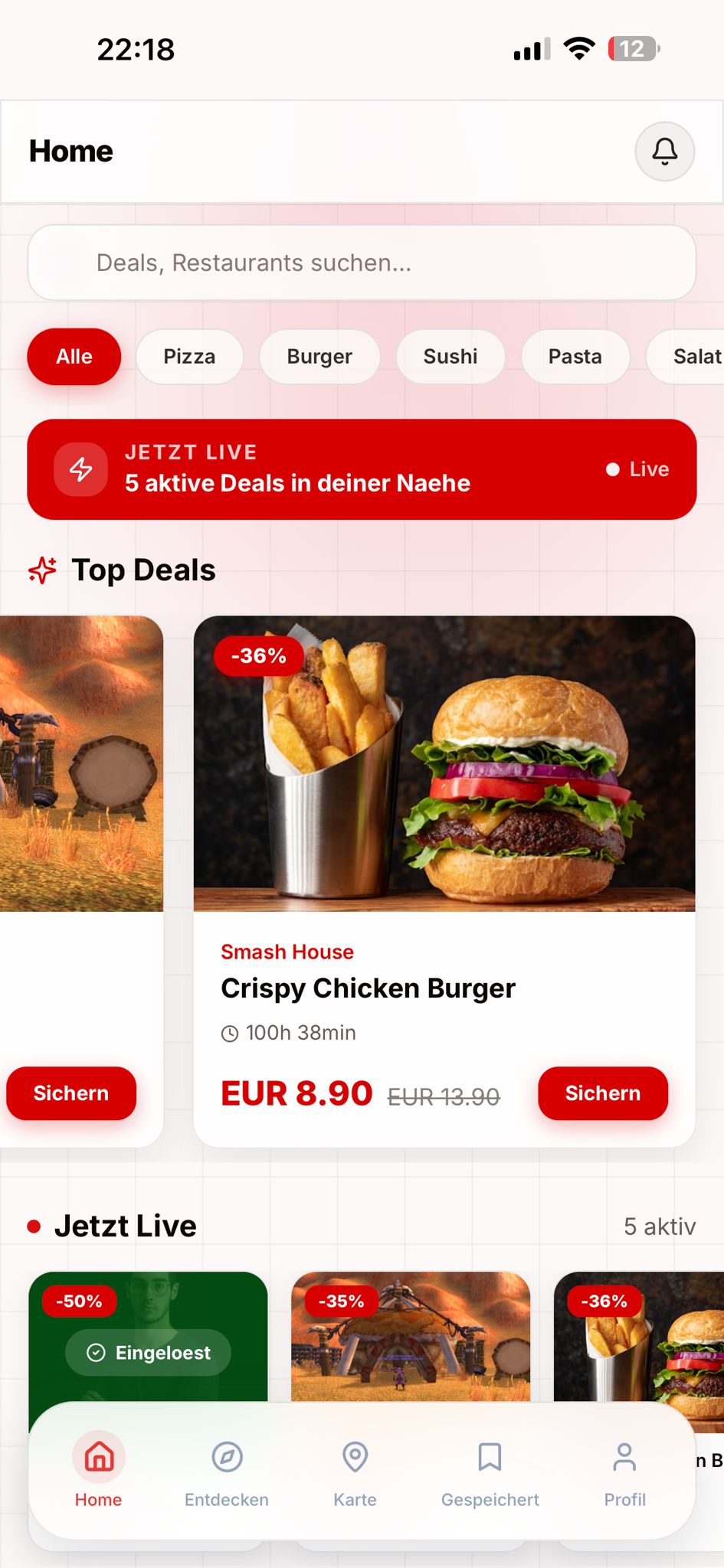 QR-Code beim Restaurant zeigen, Deal einlösen — fertig. Kein Ausdrucken, kein Stress.