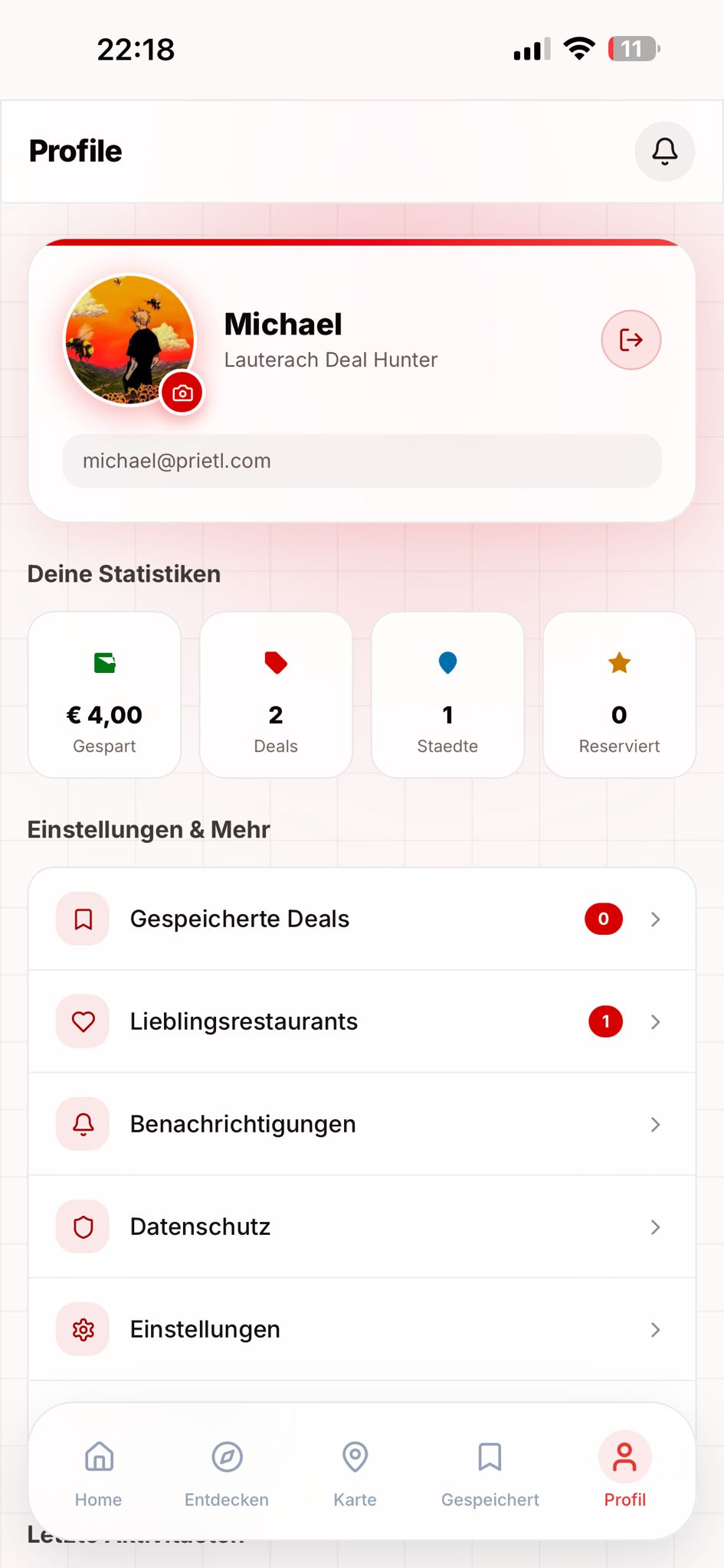 Ja! Die Basisversion ist komplett kostenlos. Du kannst bis zu 5 Deals pro Monat einlosen, alle Deals entdecken und die Karte nutzen. Mit Premium hast du unbegrenzte Deals und Zugang zu exklusiven Angeboten.