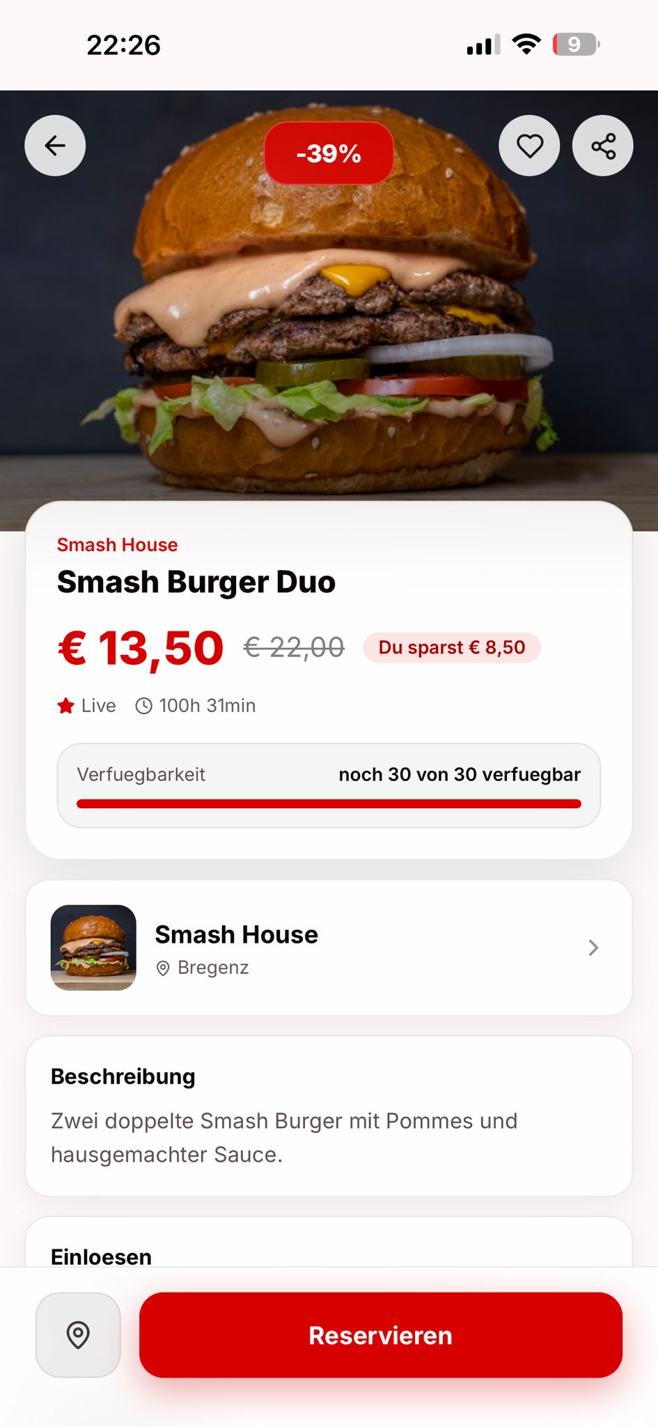 Wähle deinen Deal und reserviere ihn mit einem Klick. Kein Konto notwendig, kein Risiko.